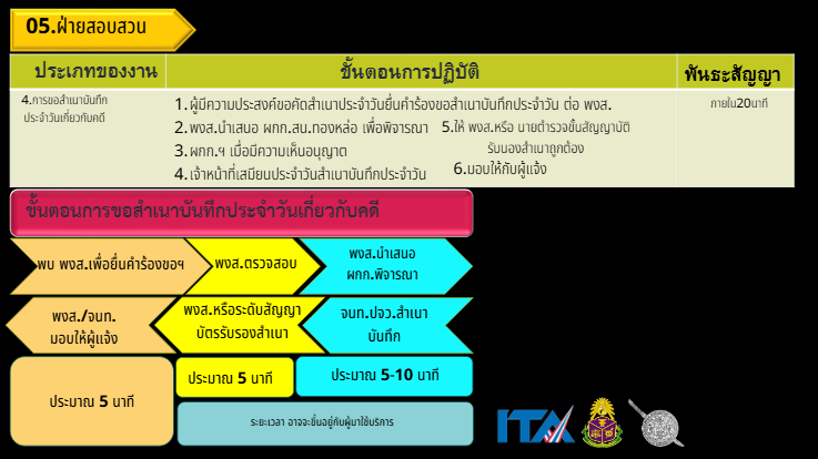 O9 คู่มือการให้บริการประชาชน งานอำนวยการ งานสืบสวน งานสอบสวน งานป้องกันปราบปราม งานจราจร คู่มือประชาชน คู่มือประชาชน-สำนักงานตำรวจแห่งชาติ