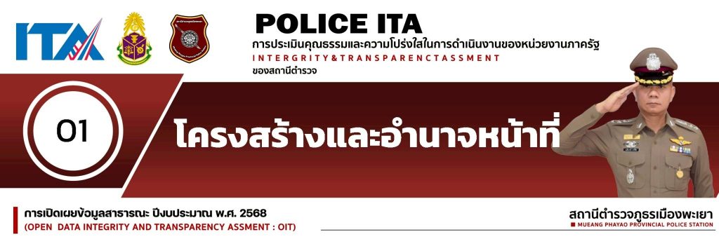 O1 โครงสร้างและอำนาจหน้าที่ โครงสร้างการแบ่งส่วนราชการ สภ.เมืองพะเยา อำนาจหน้าที่ 2.อำนาจหน้าที่ คำสั่ง ตร.ที่ 537-2555 คำสั่ง ตร.ที่ 538 -2555 นโยบาย-ผบ.ตร.-2568 ยุทธศาสตร์-ตร.-20-ปี