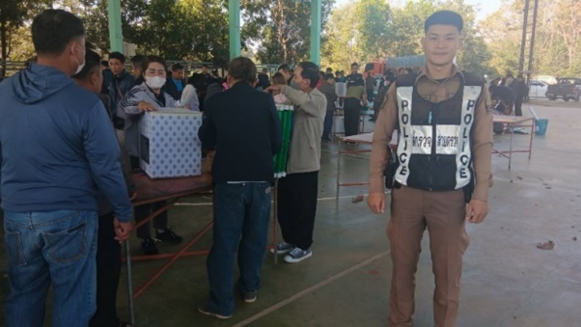 | วันที่ 3 กุมภาพันธ์ 2568 ร.ต.อผดุงศิลป์ สุยะ รอง สวป.(ชส.)สภ.เมืองพะเยา ได้พบปะ นายอมร ยอดใส ผู้ใหญ่บ้านโป่งขาม ม.10 ต.บ้านต๊ำ อ.เมืองพะเยา จังหวัดพะเยา |