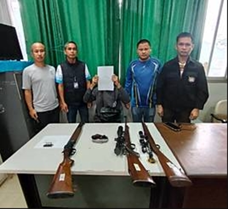 – เมื่อวันที่ 21 พ.ย. 2567 เวลาประมาณ 07.30 น. ได้รับแจ้งจากสายลับว่านายนรินทร์ โพธิตา พักอาศัยบ้านเลขที่ 51 ม.5 ต.บ้านใหม่ อ.เมืองพะเยา จ.พะเยา มีพฤติการณ์เกี่ยวข้องกับยาเสพติดและอาวุธปืน เจ้าหน้าที่ตำรวจจึงเข้าตรวจสอบ พบชายไทยตามที่รับแจ้ง จำนวน 1 ราย คือ นายนรินทร์ โพธิตา อายุ 32 ปี ที่อยู่ 51 ม.5 ต.บ้านใหม่ อ.เมืองพะเยา จ.พะเยา จากการตรวจสอบพบอาวุธปืนไทยประดิษฐ์ ขนาด .22 มม. จำนวน 1 กระบอก ,อาวุธปืนไทยประดิษฐ์แบบปั้มลม จำนวน 1 กระบอก ,อาวุธปืนไทยประดิษฐ์แบบแก๊ปยาว จำนวน 1 กระบอก และกระสุนปืน ขนาด .22 มม. จำนวน 1 นัด และได้ขอทำการตรวจหาสารเสพติดเบื้องต้น ปรากฎผลบวก(พบสารเสพติด) จึงได้จับกุมในข้อหา “พ.ร.บ.อาวุธปืนฯ” และนำส่ง พงส.ฯ เพื่อดำเนินคดีตามกฎหมายต่อไป