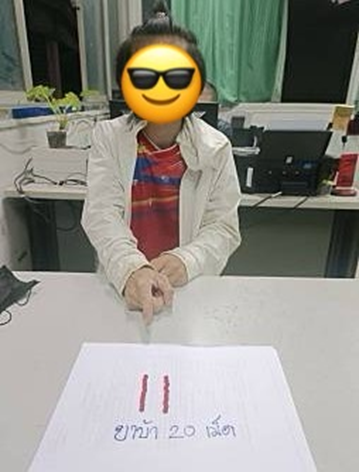 (2) น.ส.ลาวัลย์ แสงปัน อายุ 36 ปี ที่อยู่ 22 ม.3 ต.ท่าจำปี อ.เมืองพะเยา จ.พะเยา จากการตรวจสอบไม่พบสิ่งผิดกฎหมายแต่อย่างใด และได้ขอทำการตรวจหาสารเสพติดเบื้องต้น ปรากฎผลบวก(พบสารเสพติด) จึงได้จับกุมในข้อหา “เสพยาเสพติดฯ” และนำส่ง พงส.ฯ เพื่อดำเนินคดีตามกฎหมายต่อไป