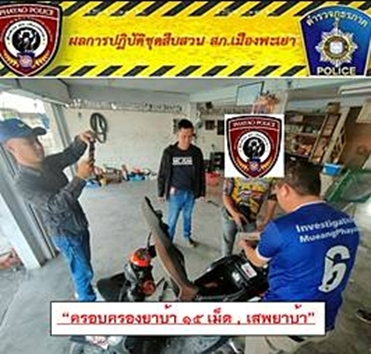 – เมื่อวันที่ 7 ม.ค. 2568 เวลาประมาณ 16.00 น. ได้รับแจ้งจากสายลับว่านายจักรพันธ์ นันทชัย ได้มาเปิดร้านซ่อมรถ ที่ 108 ถ.พหลโยธิน ต.แม่ต๋ำ อ.เมืองพะเยา จ.พะเยา เจ้าหน้าที่ตำรวจได้เข้าตรวจสอบ พบชายไทยต้องสงสัยตามที่ได้รับแจ้ง จำนวน 1 ราย ชื่อ นายจักรพันธ์ นันทชัย อายุ 44 ปี ที่อยู่ 200/12 ม.4 ต.จำป่าหวาย อ.เมืองพะเยา จ.พะเยา ตรวจสอบพบยาเสพติด(ยาบ้า) จำนวน 15 เม็ด และได้ขอตรวจหาสารเสพติดเบื้องต้น ปรากฎผลบวก(พบสารเสพติด) จึงได้จับกุมในข้อหา “มียาเสพติดไว้ในครอบครองฯ และเสพฯ” และนำส่ง พงส.ฯ เพื่อดำเนินคดีตามกฎหมายต่อไป
