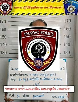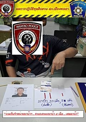 (4) นายสุริเยนทร์ พลูสิทธิ์ อายุ 46 ปี ที่อยู่ 6/2 ถ.ราชวงค์ ต.เวียง อ.เมืองพะเยา จ.พะเยา ได้ทำการขอตรวจหาสารเสพติด ผลปรากฎเป็นบวก(มีสารเสพติด) จึงได้จับกุมในข้อหา “เสพยาเสพติดฯ” และนำส่ง พงส.ฯ เพื่อดำเนินคดีต่อไป