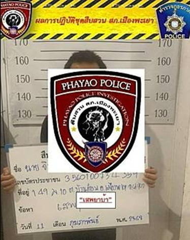 – เมื่อวันที่ 6 ก.พ 2568 เวลาประมาณ 14.30 น. ได้รับแจ้งจากสายลับว่านายธนภัทร พรหมศรี ทำงานอยู่ที่ร้านไฮเวย์ราม ถ.พหลโยธิน ต.แม่ต๋ำ อ.เมืองพะเยา จ.พะเยา มีพฤติการณ์เกี่ยวข้องกับยาเสพติด เจ้าหน้าที่ตำรวจจึงได้เข้าตรวจสอบ พบชายไทยต้องสงสัยตามที่ได้รับแจ้ง ผลการตรวจค้นพบยาเสพติด(ยาบ้า) จำนวน 63 เม็ด และได้ขอตรวจหาสารเสพติด ปรากฎผลบวก(พบสารเสพติด) จึงได้จับกุมในข้อหา “ครอบครองยาเสพติด(ยาบ้า)ฯ ,เป็นขับขี่ยานพาหนะเสพยาเสพติดฯ และเสพฯ” และนำส่ง พงส.ฯ เพื่อดำเนินคดีตามกฎหมายต่อไป
