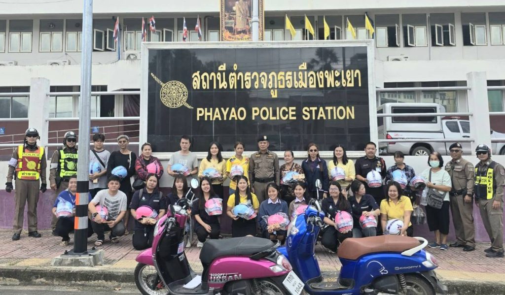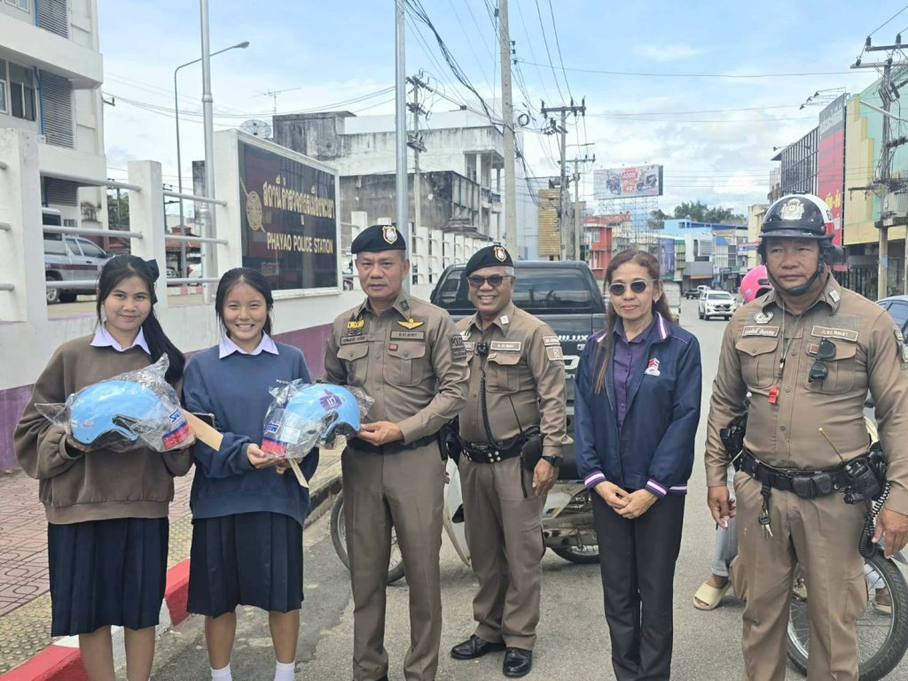 พ.ต.อ.เฉลิมชาติ ยาวิชัย ผกก.สภ.เมืองพะเยา ร่วมกับบริษัทกลางคุ้มครองผู้ประสบภัยจากรถ จัดโครงการรณรงค์กวดขันวินัยจราจรและแจกฟรีหมวกกันน็อค เพื่อให้ นักเรียน นักศึกษา และประชาชน ตระหนักถึงความปลอดภัยในการขับขี่รถจักรยานยนต์