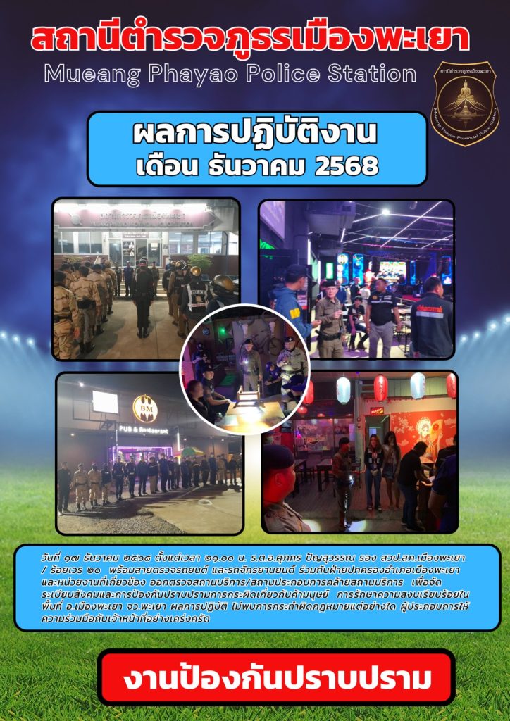 ผลการปฏิบัติงานป้องกันปราบปราม เดือนธันวาคม 2568
