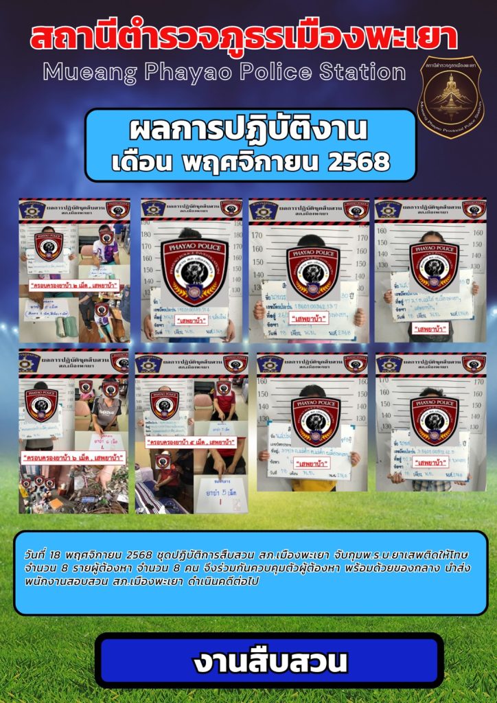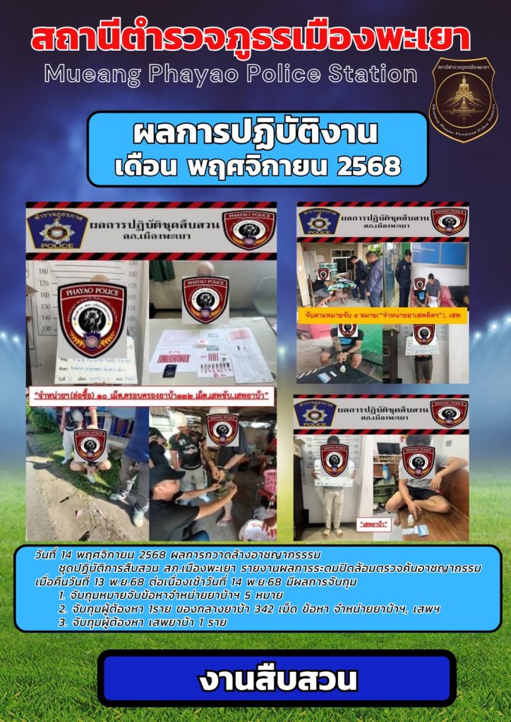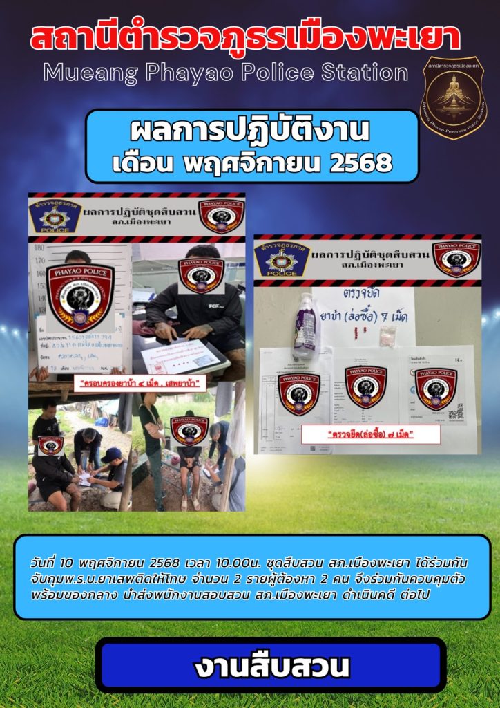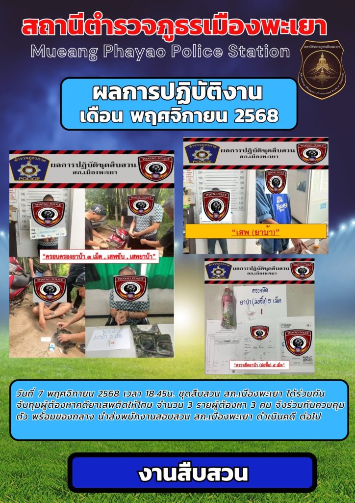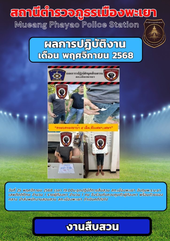 ผลการปฎิบัติงาน สืบสวน พฤศจิกายน 2568