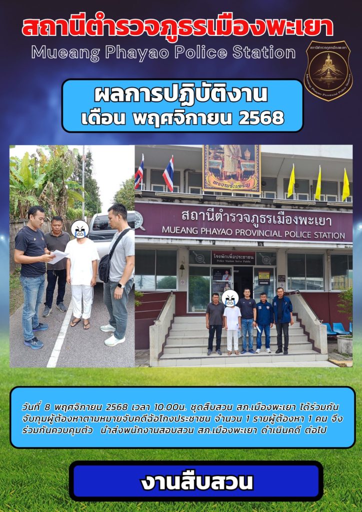 ผลการปฎิบัติงาน สอบสวน พฤศจิกายน 2568
