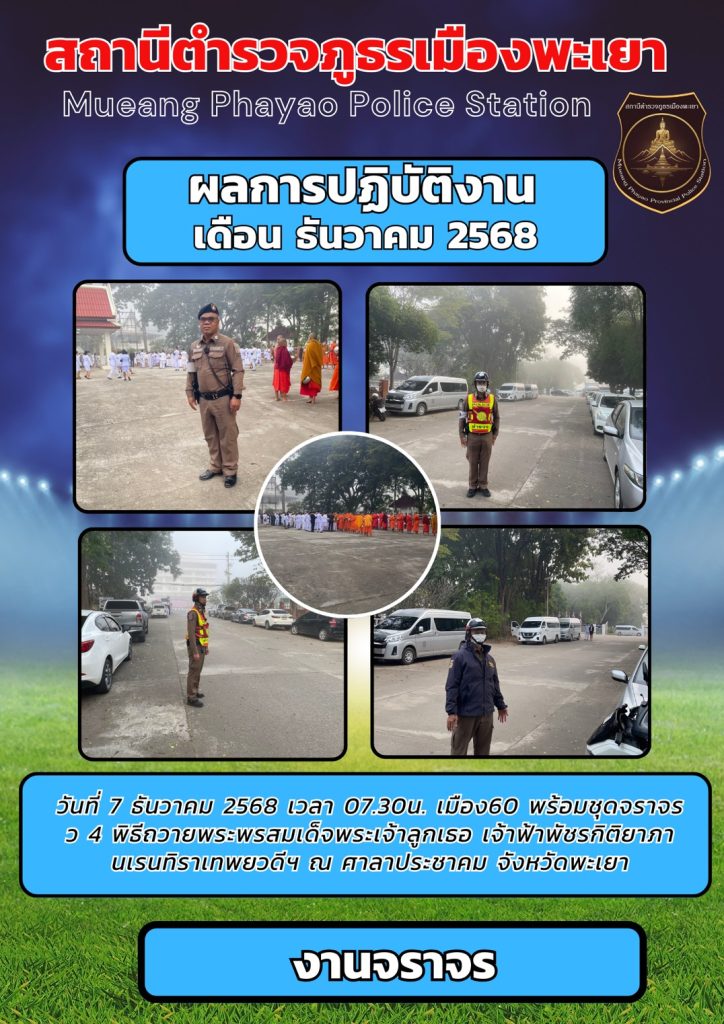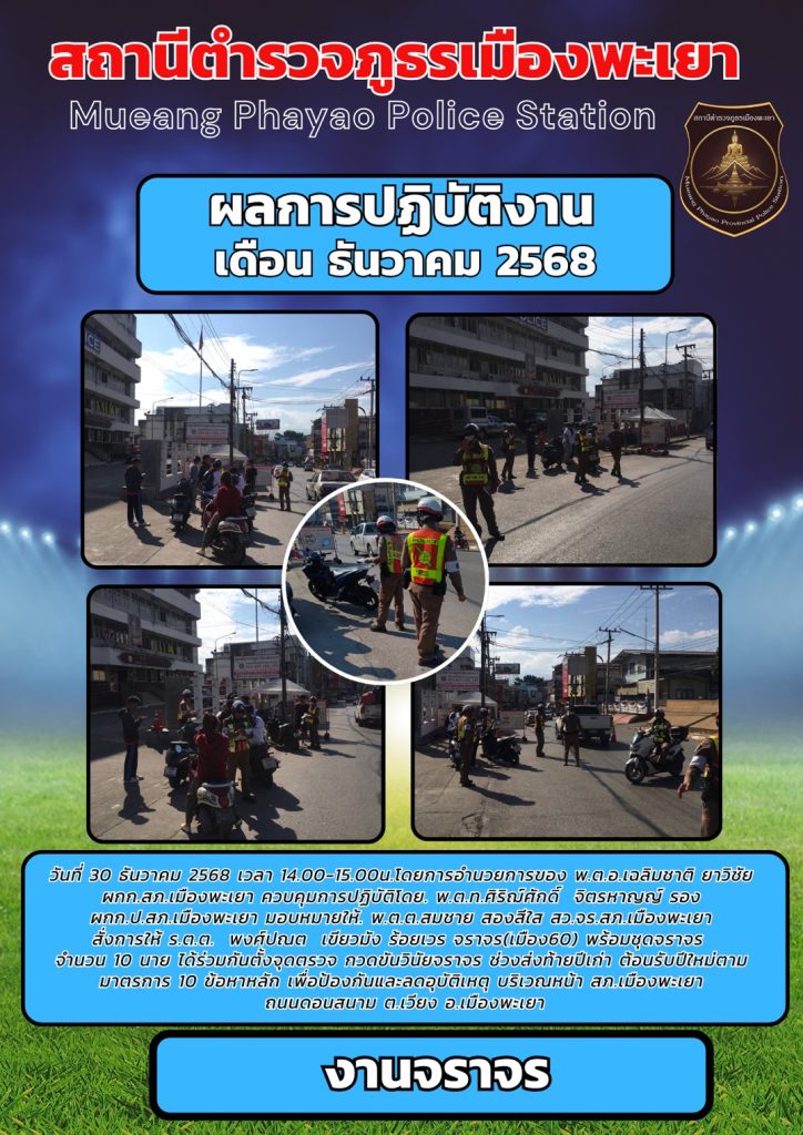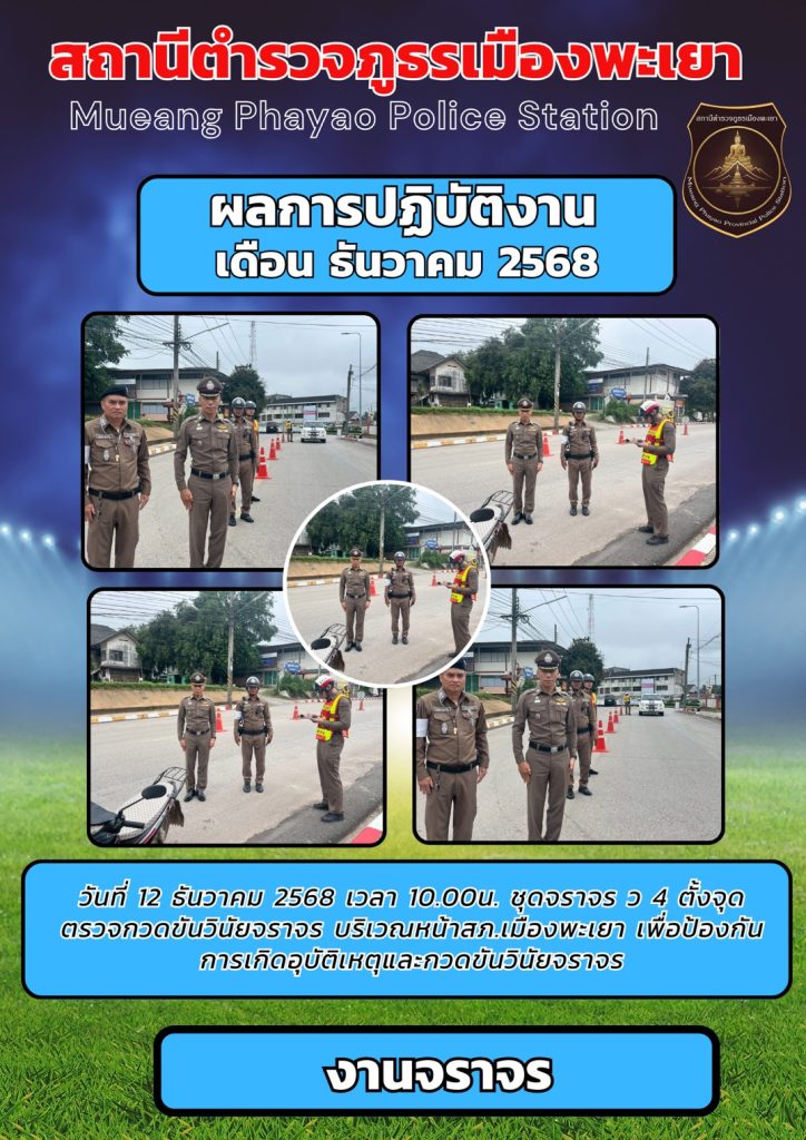 ผลการปฏิบัติงานจราจร เดือนธันวาคม 2568