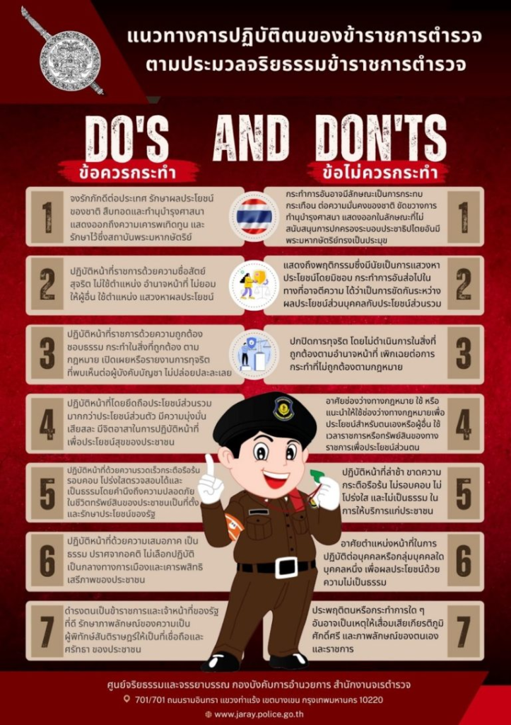 แนวทางปฏิบัติของตำรวจตามประมวลจริยธรรม7 ข้อ ที่ข้าราชการตำรวจพึงปฎิบัติ “เพื่อรักษาจริยะธรรม”