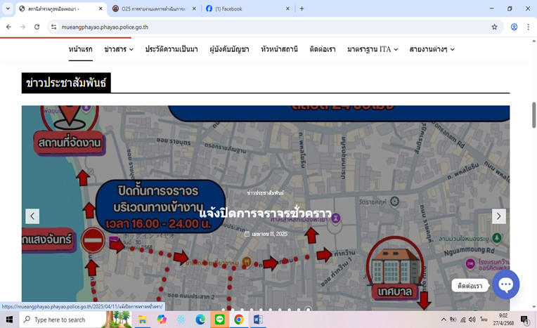 สถานีตำรวจภูธรเมืองพะเยา  ได้เพิ่ม content สื่อสาร ภาพลักษณ์การให้บริการความทันสมัย ความโปร่งใส ความเป็นธรรม โดยดำเนินการเผยแพร่ช่องทางประชาสัมพันธ์ของหน่วยงาน และเพิ่มข่าวสารภาพลักษณ์ที่ ทันสมัย /การปรับปรุงกระบวนงานต่างๆ ยกระดับการเผยแพร่ข้อมูลสาธารณะ (OIT) โดยการจัดทำเว็บไซต์/ปรับปรุงข้อมูลให้เป็นปัจจุบัน และมีสื่อ Social เพจ Facebook ของสถานีตำรวจมีข้อมูลเป็นปัจจุบัน เพื่อเป็นช่องทางการสื่อสาร บทบาท ภารกิจ และผลการปฏิบัติงานของสถานีตำรวจภูธรเมืองพะเยา ให้กับประชาชนที่มารับบริการได้รับทราบ คลิกดูด้านล่างนี้