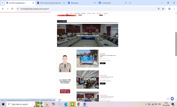 ภาพประชาสัมพันธ์การสื่อสาร บทบาท ภารกิจ และผลการปฏิบัติงานของสถานีตำรวจภูธรเมืองพะเยบสาให้กับประชาชนที่มารับบริการได้รับทราบ